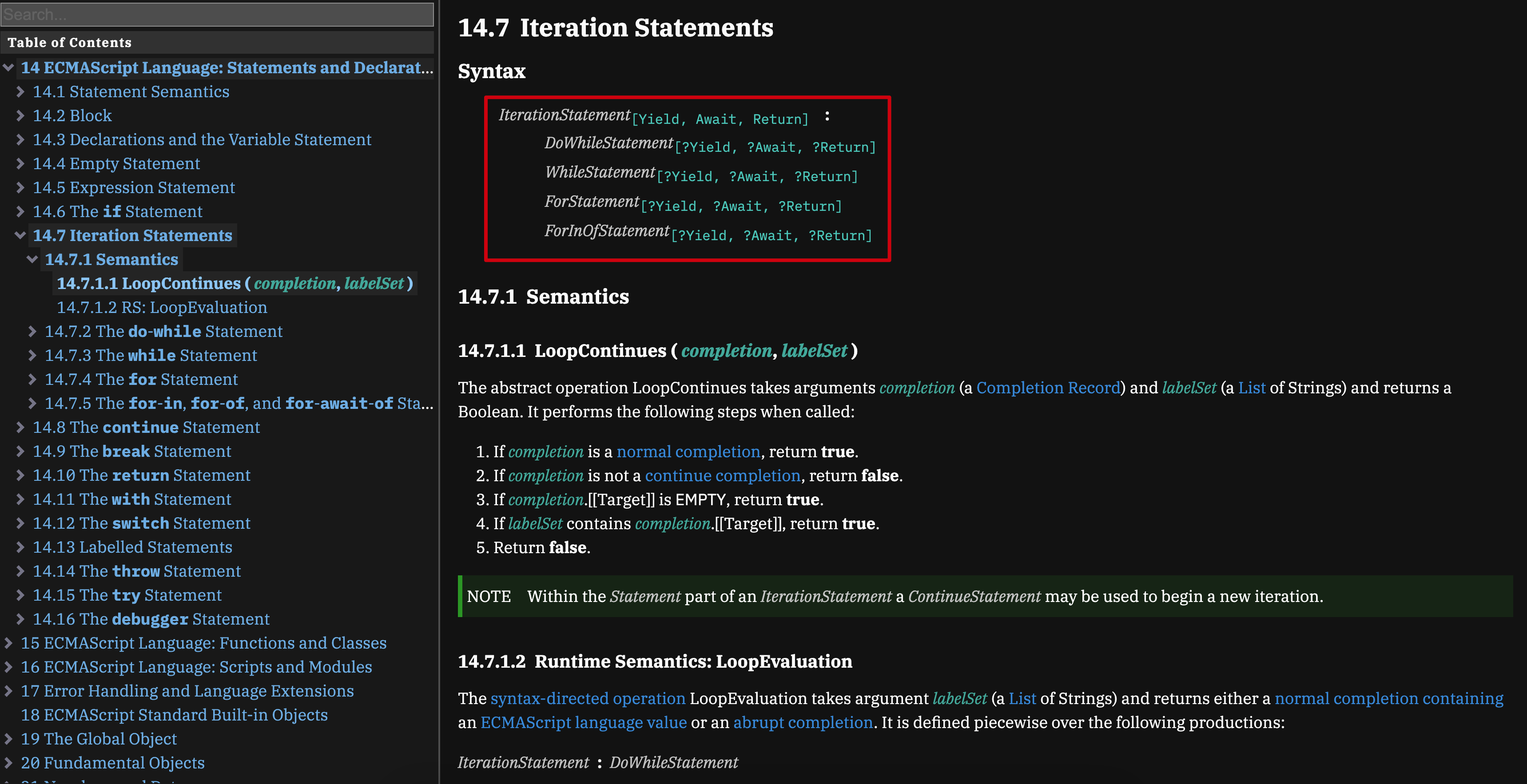 while for ECMA